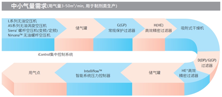 制藥企業(yè)要達(dá)到GMP高要求的空氣潔凈度,須對(duì)壓縮空氣的含油量、含塵、壓力漏點(diǎn)進(jìn)行嚴(yán)格的控制。